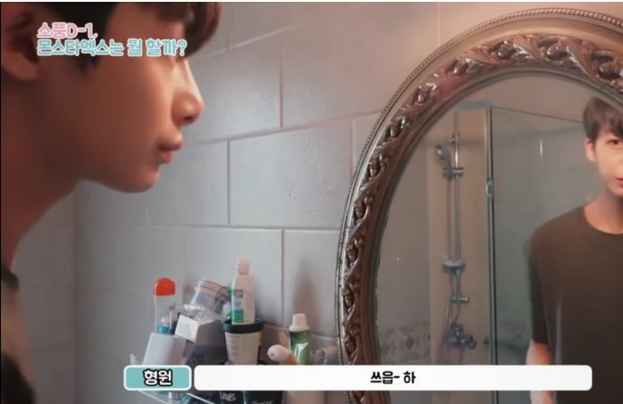 몬스타엑스 유튜브 채널에는 멤버들의 숙소를 공개하며, 그 중 멤버 형원이 화장실 거울을 보는 장면에서 성인용품으로 추정되는 물건이 공개됐다.