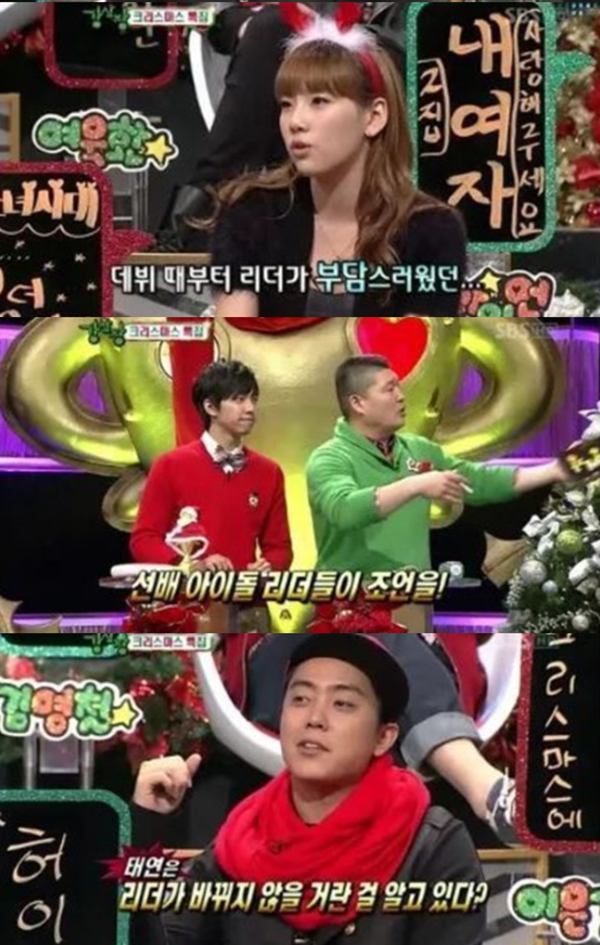 과거 SBS 예능 ‘강심장’에서 태연이 걸그룹 소녀시대의 리더를 맡고 있는 것에 대한 어려움과 고충을 털어놨다.