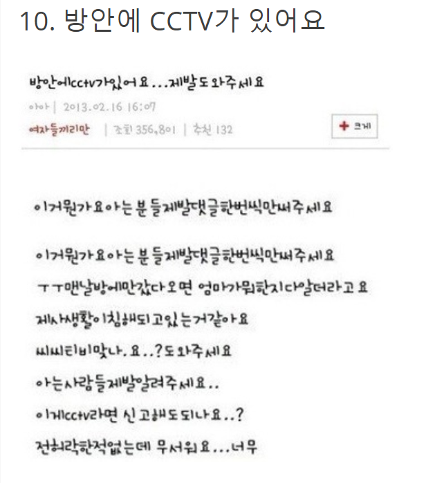 온라인 커뮤니티 ‘네이트 판’에 올라온 “방안에 cctv가 있어요… 제발 도와주세요”라는 제목의 글이다.