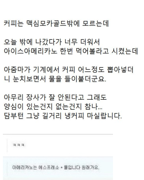 5.아메리카노에 물을 타서 주네요 ㅡㅡ