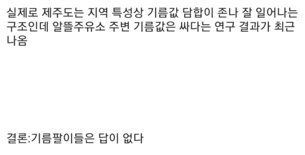해당 내용을 접한 누리꾼들은 “진짜 저렇게 되는 순간 사람들 더욱 더 기름값에 허덕일듯…”, “아 이유가 저거였음…?ㄷㄷ”, “진짜 어이없다” 등 다양한 반응을 보였다.