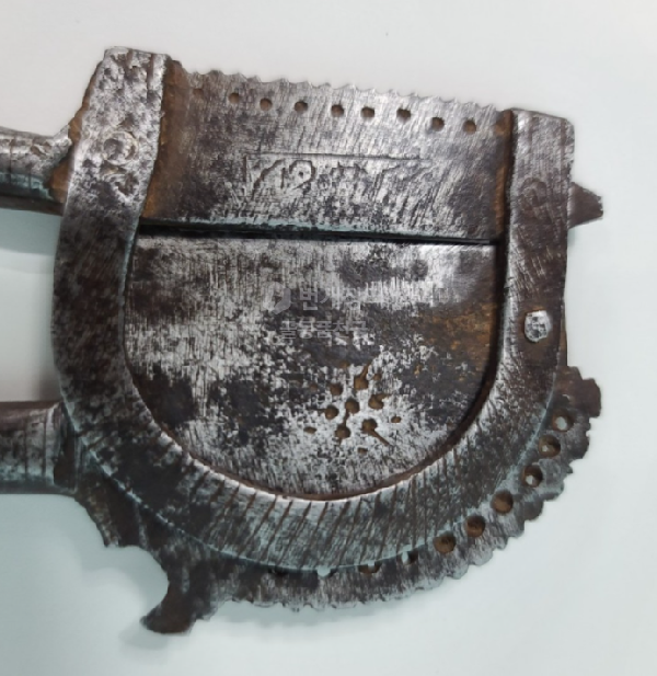 실제로 사용하던 것이라 날이 매우 날카롭습니다”며 “특별한 용도로 사용하던 것이라 양쪽에 밤송이 같은 특별한 문양을 넣었습니다. 아래의 톱니 같은 문양을 다 넣어서 아주 특별한 물건임을 보여주고 있습니다”고 말했다.