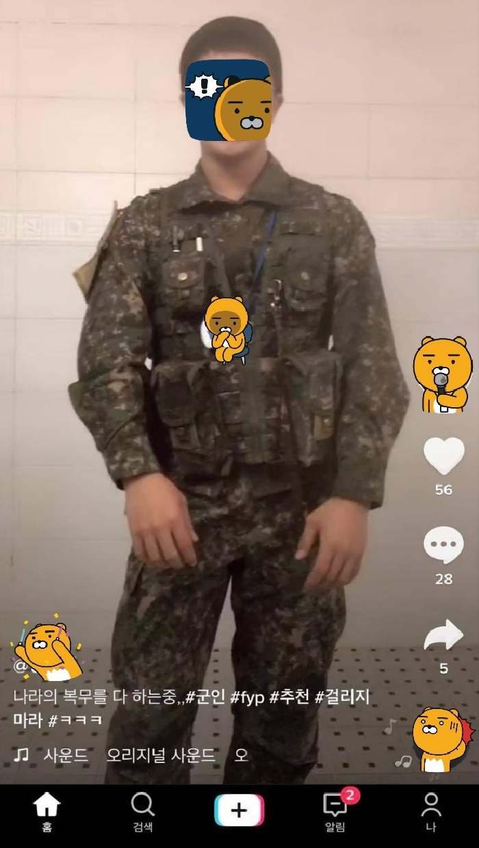 작성자는 “금일 새벽 3~4시 경 틱톡에 단독군장차림으로 영상을 촬영하여 올린 용사님”이라고 말했다.