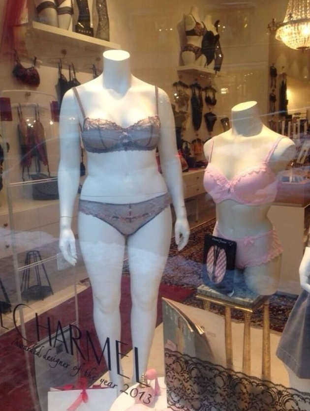 그러나 해당 매장에서 사용하고 있는 마네킹은 마른 몸매가 아닌 적당히 군살이 있는 체형이다. 팔과 배는 물론 허벅지까지 통통해 현실성 있는 평균 몸매로 보인다.