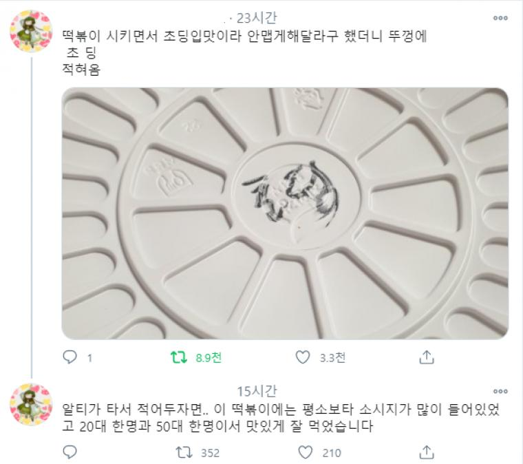 트위터에는 “떡볶이 시키면서 초딩입맛이라 안 맵게 해달라고 했더니 뚜껑에 ‘초딩’이 적혀왔다”는 글이 올라왔다.