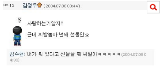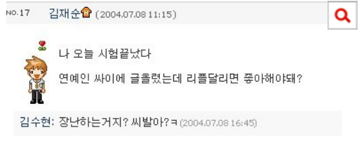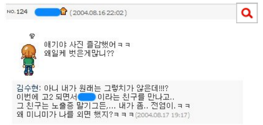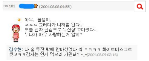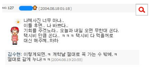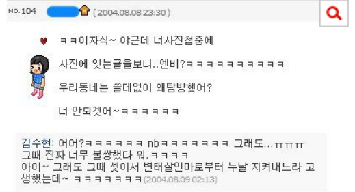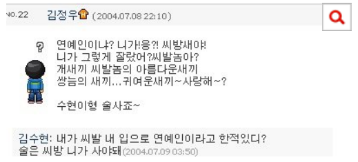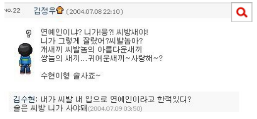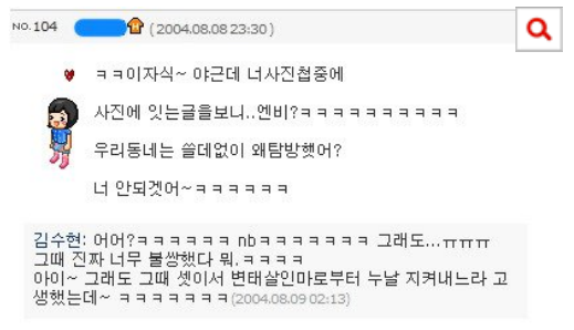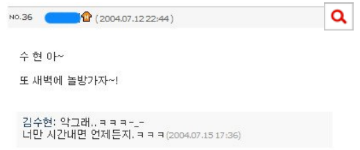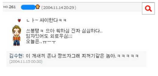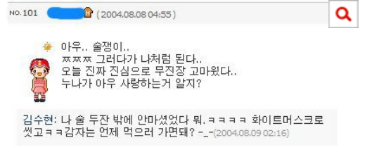 김수현이 고2때 싸이월드 방명록에 쓴 글들이다.