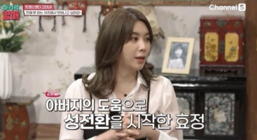 지난 10일 방송된 채널S 예능 ‘진격의 할매’에서는 트랜스젠더 무속인 이효정 씨가 출연해 가슴 속 묻어뒀던 이야기를 털어놨다.