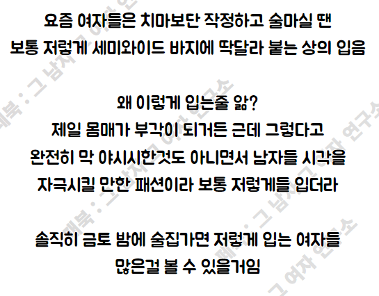 A씨는 “요즘 여자들은 치마보단 작정하고 술마실 땐” 라고 전했다.
