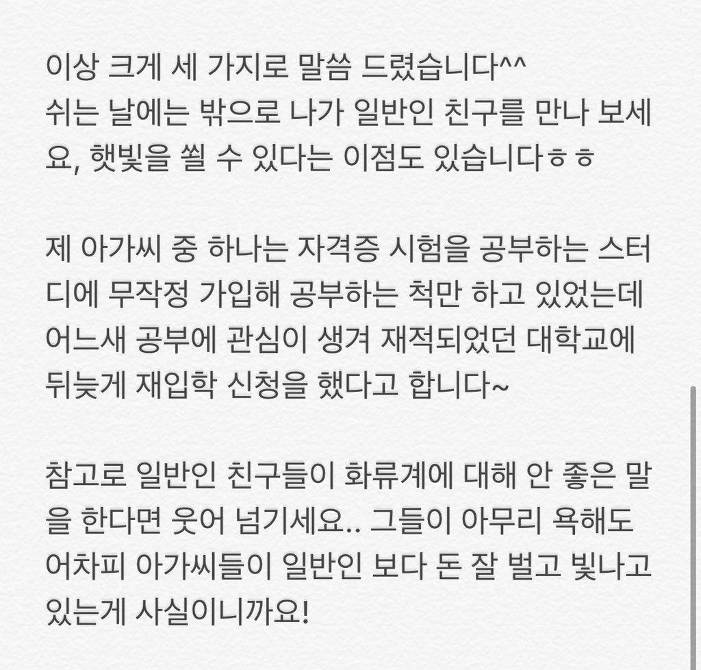 아무래도 계속 초이스로 경쟁하고 생각없는 손님들의 말에 상처 받고.. 일반적인 낮일하는 사람들 사이에 섞여있으면 자신이 얼마나 빛나는 사람인지 느껴지실 거에요 ㅎㅎ