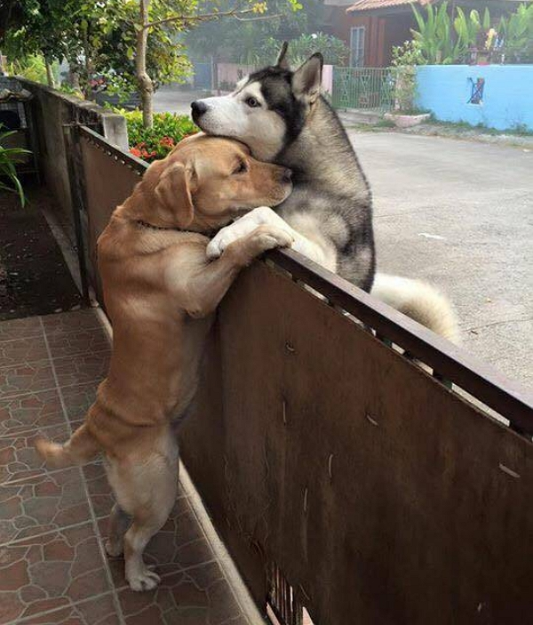 사진을 공유한 리트리버 주인은 “허스키가 외로워서 우는 일이 있었다. 리트리버의 답 울음이 들리면 조용해지고 그랬다”고 설명했다.