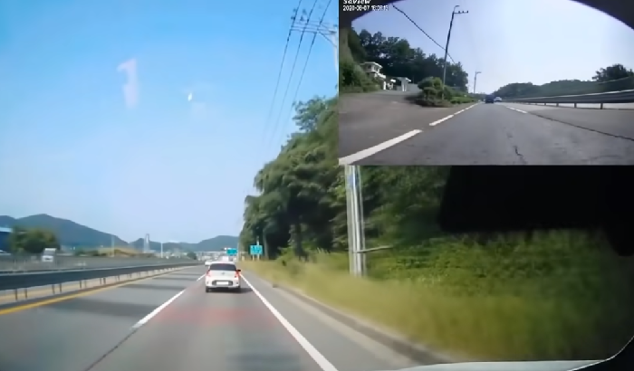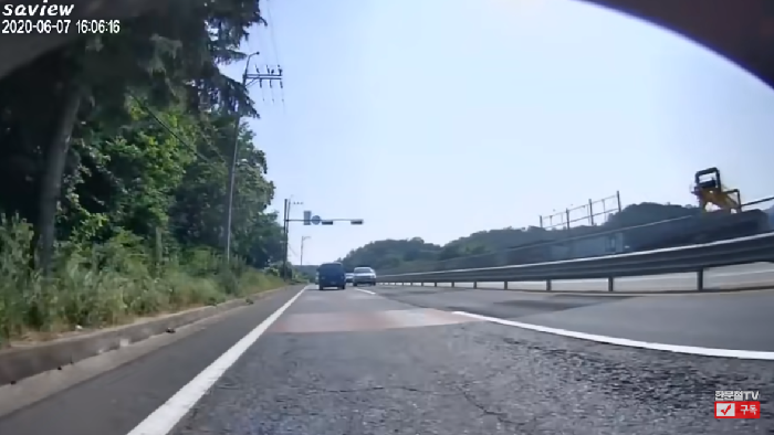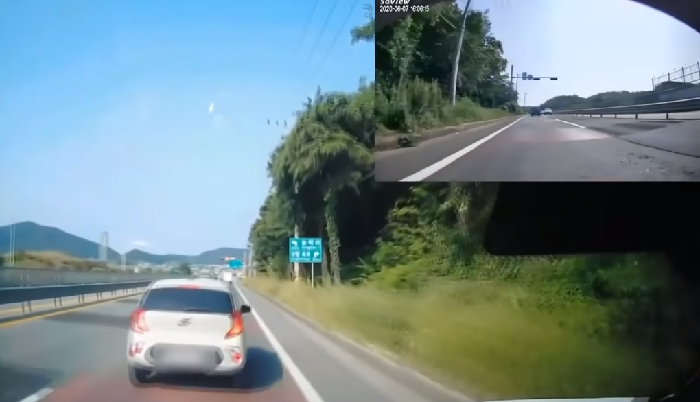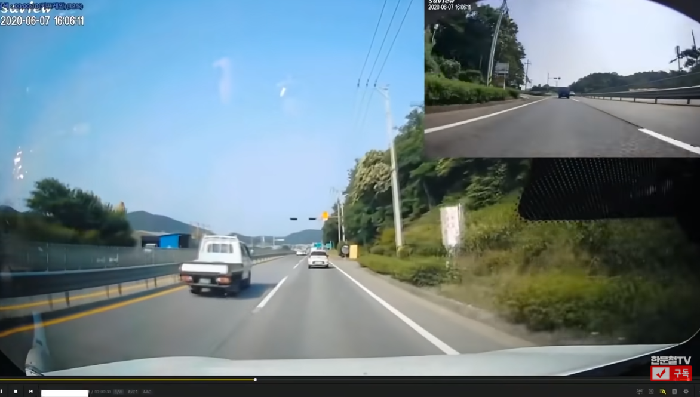 블랙박스 영상 속 제보자는 1차선에서 달리다 2차선으로 변경했다. 앞에는 흰색 경차가 달리고 있었다.
