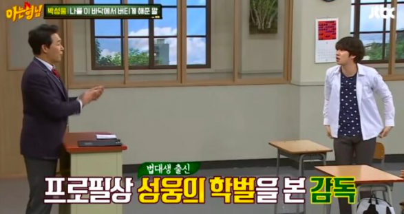 박성웅이 한 코너에서 “프로필상 박성웅의 법대생 출신 학벌을 본 감독이 한 말은?”라며 퀴즈를 냈다.