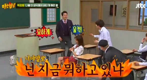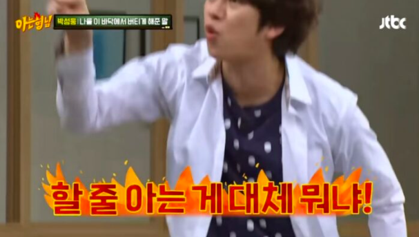 뿐만 아니라 그 이후에도 김희철은 자리에서 일어나 박성웅에게 삿대질을 하며 “할 줄 아는 게 대체 뭐냐?!”라 다소 장난이라기엔 선을 넘은 듯한 발언을 쏟아냈다.