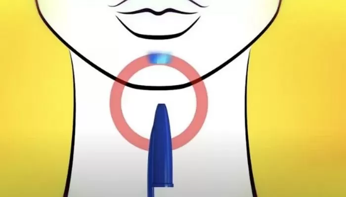 영상에서 볼 수 있듯 볼펜 뚜껑에 난 작은 구멍이 목구멍에 끼었을 때 들숨 날숨을 쉴 수 있게 하는 모습을 확인할 수 있다.
