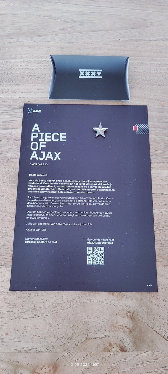 13일 아약스는 공식 홈페이지를 통해 우승 트로피를 녹여 42,000개의 작은 챔피언 별을 만들었다고 공개했다.