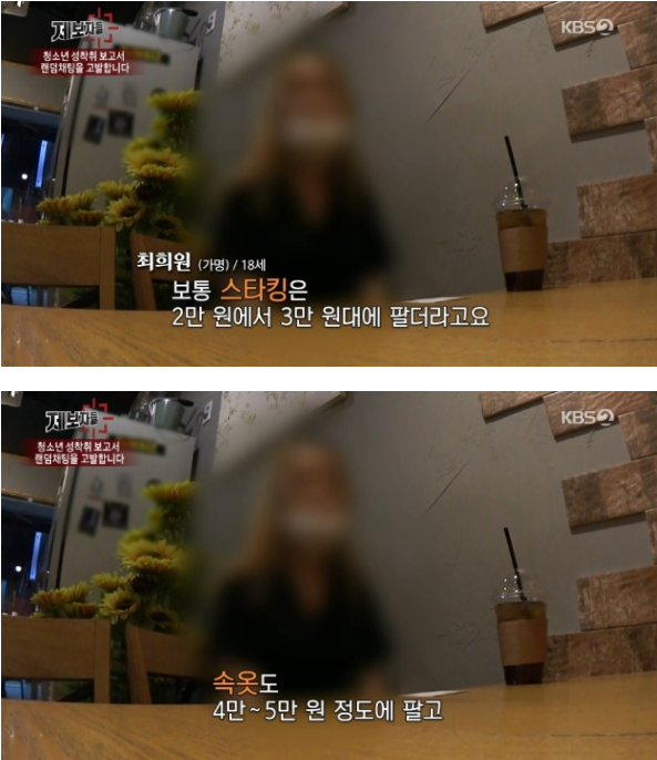 랜덤채팅 내에서는 미성년자들에게 다가가 스타킹, 속옷 등을 요구하는 남성들이 많았고 심지어 입고 있던 것이나 체취, 생·리혈이 묻으면 가격이 더 인상된다고 한다.