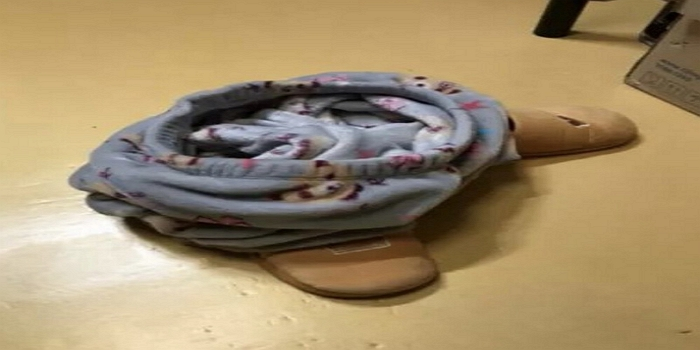 해당 게시물에 올라온 사진은 벗어둔 수면 바지와 슬리퍼 사진이었다.