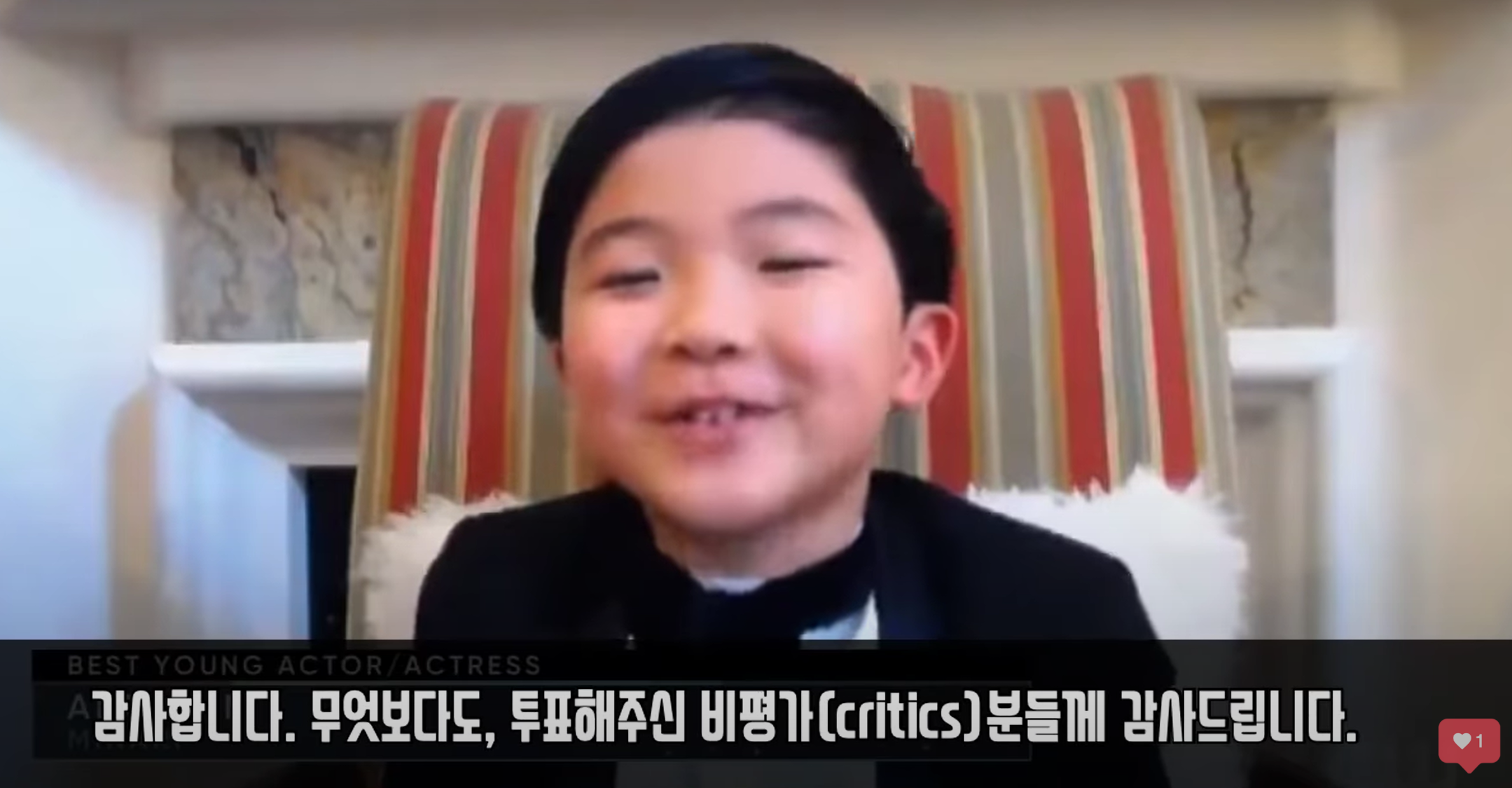 지난 8일(한국 시각) 미 방송 영화 비평가 협회에서 주관하는 ‘크리틱스 초이스 어워즈(Critics’ Choice Awards)’에서 앨런 김이 아역 배우상을 수상했다.