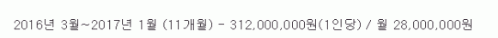 해당 게시물에는 실수령액 기준으로 2016년 부터 2019년 4월 까지의 정산액이 올라왔다.