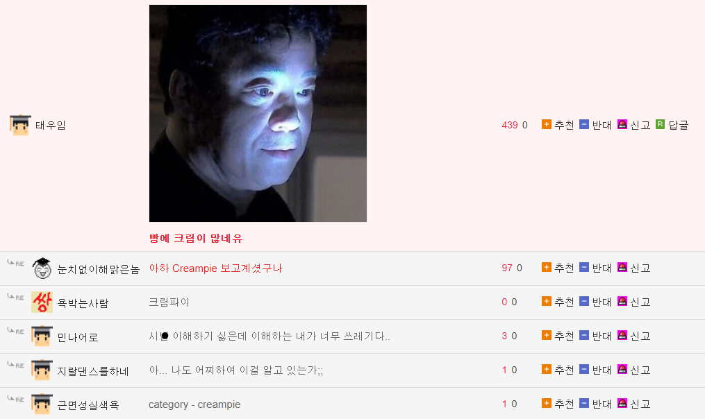 이를 본 누리꾼들은 “이걸 안들키네….”, “와우 Alt+Tap 실력이 좋네유”, “빵에 크림이 많나요? ‘Cream+pie'”, “(외국 가슴)빵빵 베이(글 미녀)킹(왕짱)영상”, “혹시 제빵사가 알몸에 앞치마만 입은건 아닐까요?”등의 반응을 보였다.