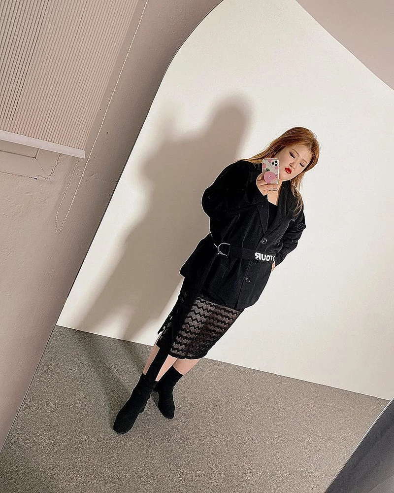 해당 사진에서 이국주는 검은색 의상을 입고 있었으며, 확 달라진 몸매를 자랑하는 모습이 담겨있다.