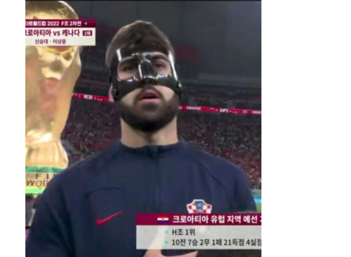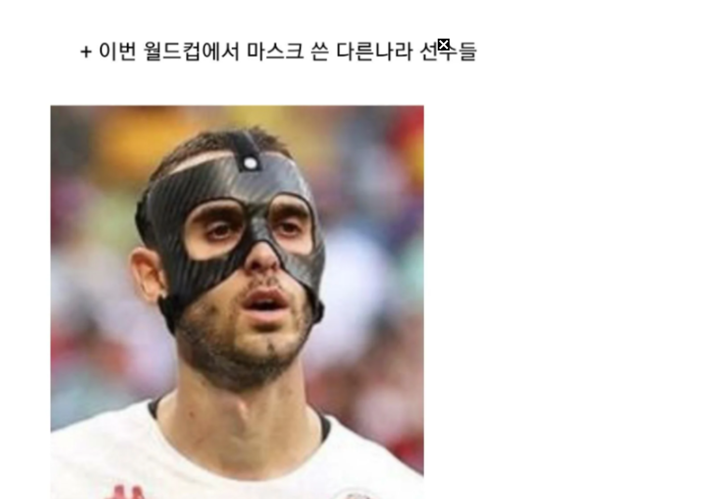 손흥민은 월드컵 경기를 앞두고 안면 골절이라는 부상을 얻어 수술을 해 얼굴에 마스크를 끼고 경기에 임했다.