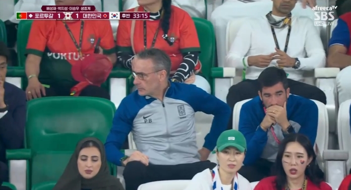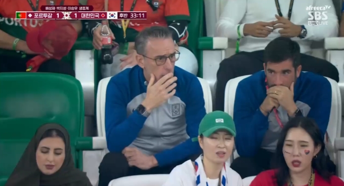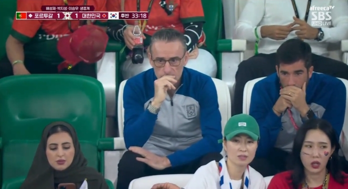 2022 카타르 월드컵 16강에 진출한 대한민국, 포르투갈과의 경기에 레드카드를 받았었던 벤투 감독은 관중석에서 앉아 경기를 관람했다.