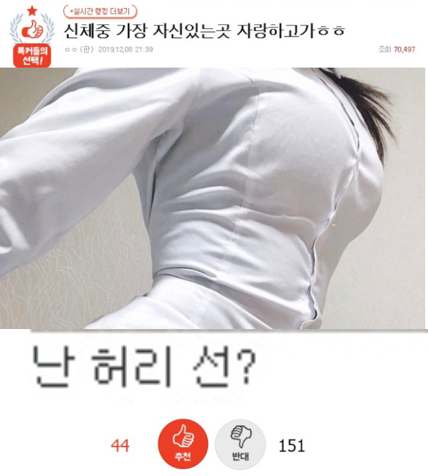 한 여성이 자신의 신체부위를 올리면서 가장 자신있는 신체부위를 하나씩 올리고 자랑하고 가라는 글을 올렸다.