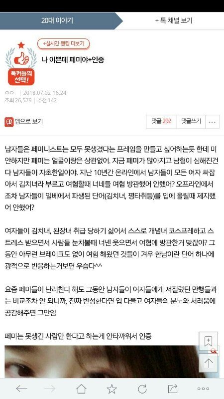 여초 커뮤니티인데 이게 불편한지 비추가 4배 가까이됐다.