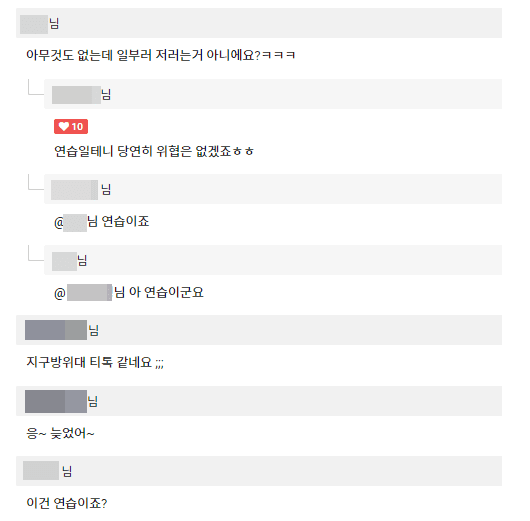 훈련이었지만 실제 상황처럼 보이는 순간에 많은 네티즌들은 놀라움과 동시에 다양한 댓글을 남겼다.
