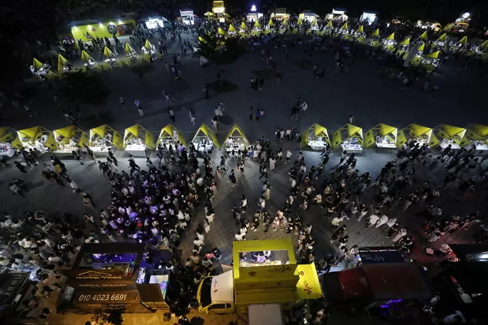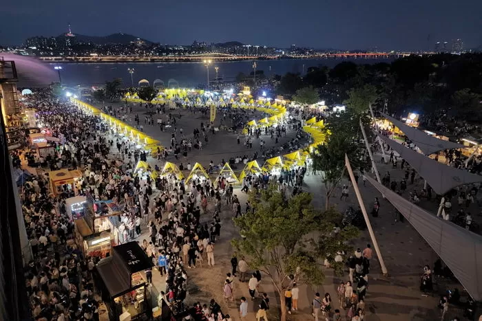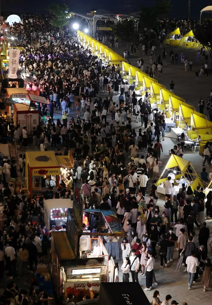 코로나로 인해 잠정 중단됐던 서울 한강달빛야시장이 3년 만에 돌아와 수많은 사람들이 몰려들었다.