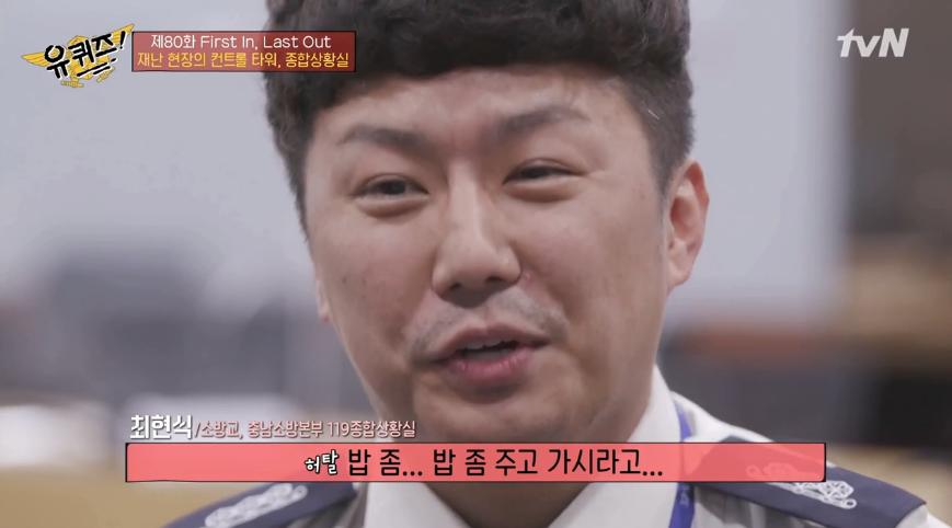 지난 11일 방송된 tvN ‘유 퀴즈 온 더 블럭’ 80회는 소방관들과 함께 하는 ‘First In, Last Out(첫 번째로 들어가, 마지막으로 나온다)’ 특집으로 꾸며졌다.