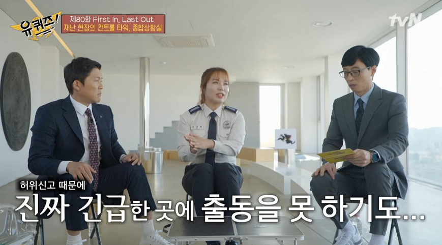 유재석은 “위급하지 않은데 전화하는 분도 계시지 않나”라고 물었고 이에 조진영 소방장은 “허위 신고도 많다. 119 구급차를 택시처럼 이용하는 분이 있다”고 말했다.