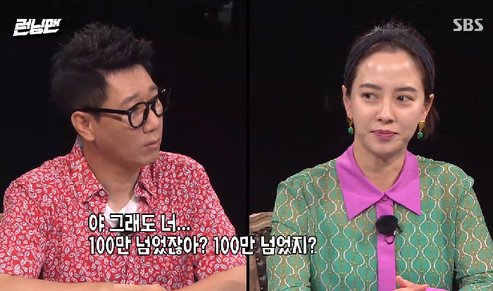 그러자 지석진은 “100만 넘었지?”라고 물었다. 이에 유재석은 “그런 이야기 좀 하지마”라고 핀잔을 줬다.