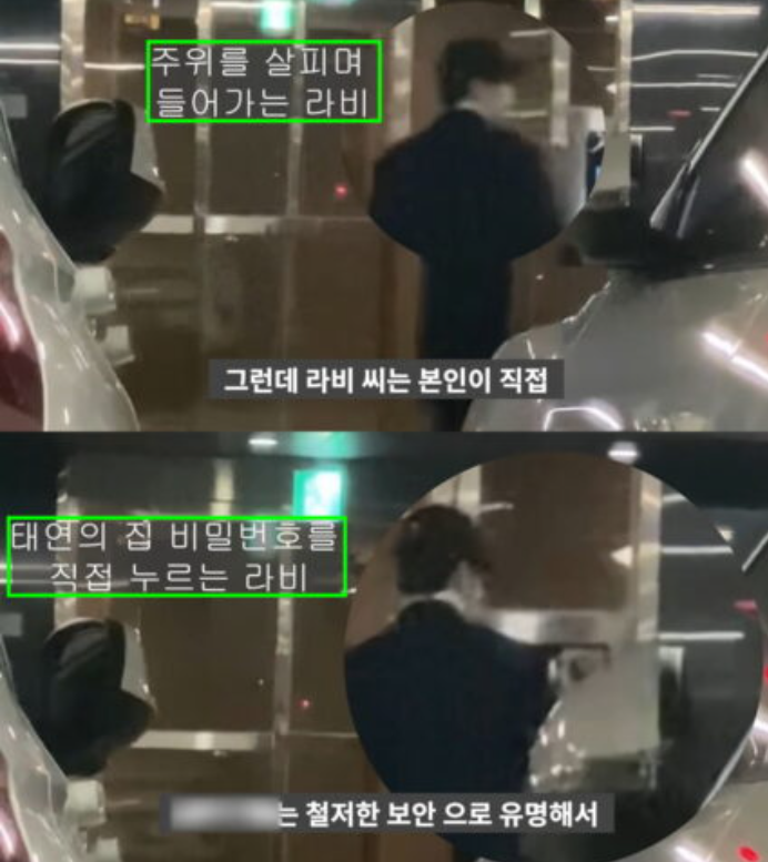 열애설을 보도한 기자의 주장에는, 라비가 주위를 두리번거리다 태연의 집 비밀번호를 누르고 들어간 모습이었다고 전했다.