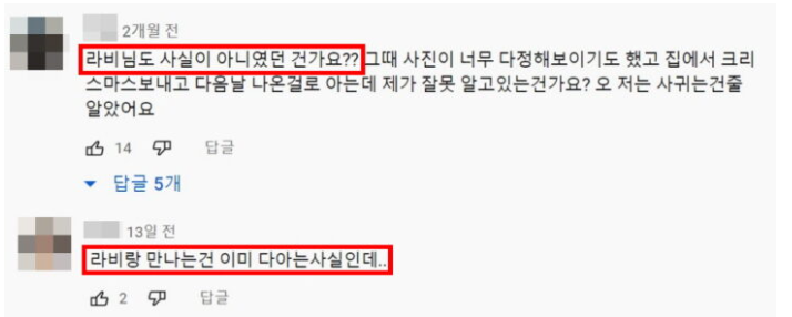 이 글을 본 네티즌들은 ”라비랑 사귀는 거 사실 아니었나?”, ”라비랑 만나는 건 다 아는 사실이다”, ”그냥 친해도 다 사귀는 걸로 치부하네”라 다양한 댓글을 남겼다.