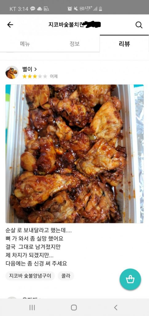 치킨을 시키면서 요청 사항을 적었는데 하나도 지켜주지 않은 사장에게 분노해 리뷰를 악의적으로 나쁘게 적고 별점은 3개 준 사건인데 사진으로 바로 알아보자.