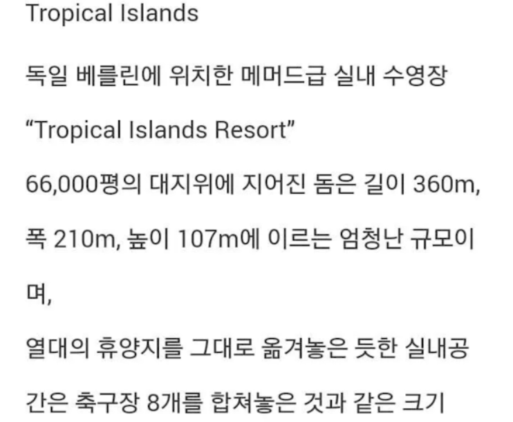 독일 베를린에서 60km 떨어진 브란트 마을 인근에 위치한 ‘트로피칼 아일랜드’라는 엄청난 규모의 실내 수영장이 알려져 엄청난 화제가 되고 있다.