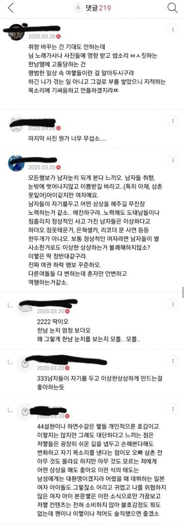 이를 보면 위에 언급한 워마드를 극혐하는 성향이 이들이 단순 문재인 대통령을 까서 욕하는건지 그들의 일베와 닮아가는 방식에 반대하는 건지 알 수가 없다. 게다가 문제는 페미니스트를 자처하는 양반들이 입진보에 이은 입페미 설현이나 현아 등 같은 여자 연예인의 얼굴부터 발 끝까지 품평하기로 악명이 높다는 것이다(…). 한마디로 여자 연예인 혹은 일반인 성희롱 글이 자주 올라와서 본인들이 그렇게 싫어하는 남초 사이트와 수준이 다를 바가 없다.