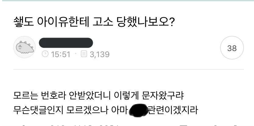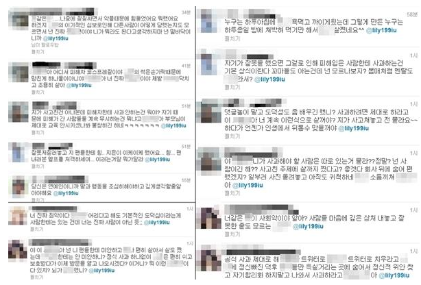 아이유는 여초카페로부터 수많은 악플을 받았었고, 아이유는 그런 악플에도 유연하게 대처하며 잘 보냈지만 이제는 참을 수 없는지 고소하기로 마음을 먹었다.
