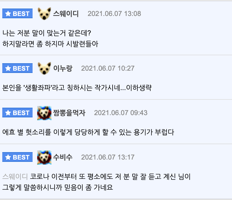 해당 게시물을 접한 누리꾼들은 “나는 저분 말이 맞는 거 같은데? 하지 말라면 좀 하지마”, “별 헛소리를 이렇게 당당하게 하다니..지나ㅉ 대단하다”, “이야..이 사람 뭐하는 사람이냐;;”라며 현재 다양한 반응을 보이고 있다.